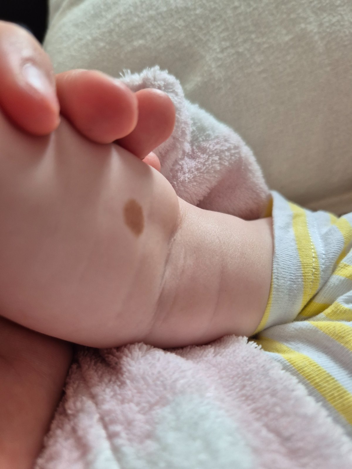 @evickuska ahoj, maly ma presne takéto na kolienku.. Od narodenia.. Dr sa ma pýtala, či som sa nebuchla a nemala modrinu počas tehu.. A presne na tomto mieste som sa v cca 6tt buchla keď sme sa skoro vykotili z člna.. Vraj keď sa v tehu udres do modriny tak ostane bábätku znamienko, fľak 🤔
