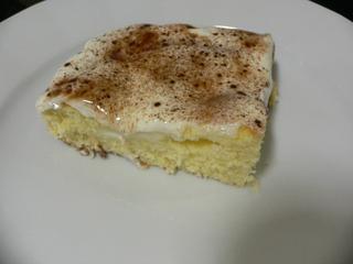 po upečení nechám vychladnout a potřu zakysanou smetanou rozmíchanou s vanilkovým cukrem a popráším kakaem nebo skořicí.