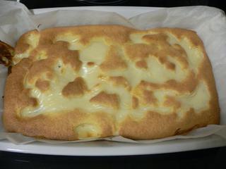 z bílků ušlehám sníh, přidám cukr, žloutky, mléko, mouku s práškem do pečiva a olej, těsto naliju do pekáčku vyloženého pečícím papírem, do syrového těsta pak naliju cik cak uvařený puding a dám péct na cca 180C,