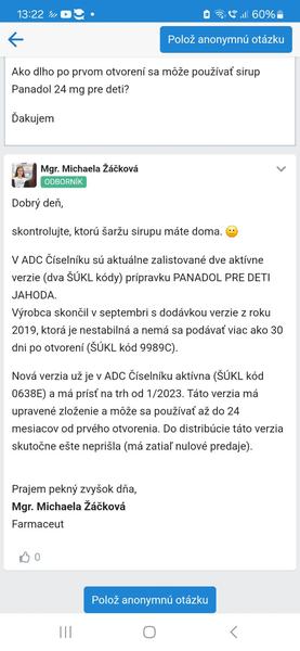 Dĺžka použiteľnosti sirupu Panadol sa zmenila?