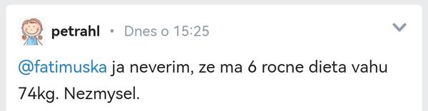 @fatimuska tiez to mame v rodine, sestrina dcera… ked mala 8 vazila 69 kg.. boli aj u endiokrinologicky, ale potom sa uz na to vykaslali 😕 dietu drzala chvilu.. teraz ma 12, kolko vazi neviem, ale urcite minimalne 80 kil ma..raz ked bola u nas, tak reku postav sa na vahu- bola aj dalsia sestra a neter ked zisla, tak povedala- no a teraz uz viete kolko vazim..tak mi to bolo luto, aj trapne mi bolo, lebo ocividne ju to nahnevalo... nevie sa bicyklovat, baby ona nevedela vliezt do vane 😕 a presne, ziadny pohyb, cely den vyvalena, ledva funi .. tam viac menej zauradoval svagor, lebo on ju trapit nebude, ale , ze je tlsta, to zjavne trapenie nie je.. synova spoluziacka tiez takto, ale tam zas otec ju prepchava, len aby nebola hladna… ked je aj u starkych, kazdu chvilu vola, ci jedla, aby nebola hladna 🤦♀️ my sme sa nikam nepohli, dufam, ze vam sa to podari