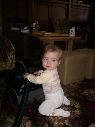 a ted dám jednu fotečku,šíma se začal stavet u všeho kam dosáhne a pomaličku nahazuje i to lezení,zatím pár pidi temp,na vetší vzdalenosti pořad plazí 😉