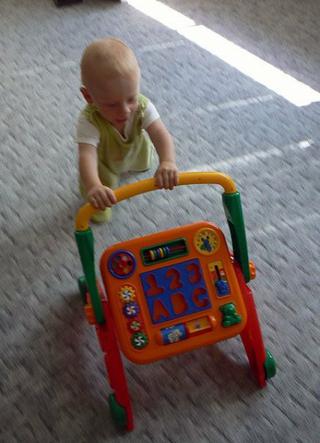 Aktivní chodítko, jestli myslíte to co mám na fotce, tak s tím jsme se opravdu také nachodili.Máme ho tu ještě ted a i ted si ho občas vytahne a hlavně ted už si hraje stěma aktivitama, vkládačky a tak, před tím ho to moc nezajímalo.
