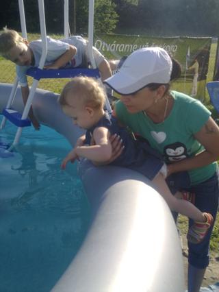 včera dopo poslední mé cvičení před prázdninama v MC a pak zase u babi a dědy,holky bazén je super,tady navíc není kam se jít koupat,ale je to u tchánovců na zahradě,takže ne naše vlastní,sice tam můžeme bejt od rána do večera,ale znáte to,není to úplně ono,jak to není naše,sice jsou tchánovci v pohodě,ale člověk nemá takovej ten svůj klídek,musím se hlídat a hlídat děti,aby moc neprudily,ale zatím to docela jde