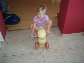 ale aspoň ad odstrkovadla,Honzisovi strašně dlouho trvalo,než přišel na to,že na něm může jezdit,ted na větší motorce občas jezdí doma,ale to většinou jen když si jí najde Míša a v tu chvíli ji musí mít 😅 ,venku na ní jezdit nechtěl,párkrát jsme to vyzkoušeli a ji pak táhla,tak jsme to zrušili,ale zjistila jsme,že v Krtečkovi na ní jezdil o 106 a to dokonce i z rampy pro vozíčkáře dolů,Míša jí taky nejdřív jen nosila,jezdit na ní začala po bytě skoro před rokem,ale venku taky nechtěla,ještě máme odstkovadlo takovou tu kačenu,je historická,poděděná,už jsem se jí chtěla zbavit a jí najednou chytla,takže s ní teď chodíme ven a jezdí na ní i venku,zjstila,že to jede nejlíp z kopečka,zvedne nohy a jede,je to takovej malej kaskadér