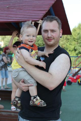 Grahama jsem nakonec videla az na svatbe,protoze jsem si rikala,ze toho bude mit plny zuby,mozna se stavi zitra.Mates byl v kocarku,protoze spal tak nemam ani fotku spolecne,ale byl vyfiklej v kiltu... 😉 Obdivoval malyho jak jinak 🙂