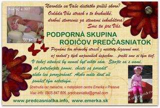 ale ak ste tu niektoré z Prešova a okolia, rozbiehame STRETNUTIA podpornej skupiny rodičov predčasniatok, stretávali by sme sa raz mesačne v materskom centre, už sme mali jedno stretnutie aj je to fajn, keď sa môžete poradiť, porozprávať, podporiť sa, veď vieme všetky mamy predčasniatok, aká je to zložitá situácia, hlavne v začiatkoch, keď neviete čo a ako.. ☹