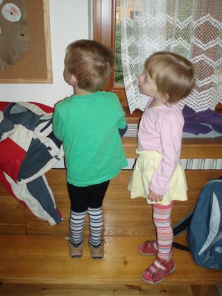 No a teď zprávy ze školky. Tak hodina byla pro Kubu maximum 😖 😖 Poslední 1/4 hoďku tam řval a pořád volal "kde je maminka?". Visel na klice od dveří, až museli zamknout. Anetka byla v pohodě, akorát pak ke konci už taky natahovala, protože to viděla u Kuby. Fakt nechápu, co měli za problém, protože zatím v kolektivu (bez maminky a tatínka) byli vždy v pohodě a nebrečeli, a zvládli to vydržet třeba i celé dopoledne. Tak jsme zvědavá na zítra. Domluvili jsme se s učitelkou, že pokud se jim tam bude chtít a nebude to o tom vléct je tam násilím, tak zase zítra na chvíli pomažou. Ale když jsme je tam ráno odvedli, tak byli naprosto úžasní, hned vtrhli mezi děti a nějaká maminka s tatínkem jim byla ukradená. Jo a Kuba tam ani nesvačil, zato Anetka ano 🙂 🙂 To se mi sami pochlubili.