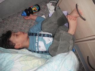To je nas oslavenec ,tu flasku jsem mu tam pridala ja a mokry ma kalhoty od vody venku jsem ho nestihla ani svliknout... 😝 To ma na sobe tu bundu na 4-5let 110cm... 😕