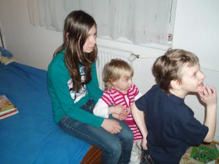 Jinak u nás se dneska po obědě spalo od 12 do 15.30,sice s přestávkama,kdy se vzbudila,oznámila mi,že nevstává,otočila se a spala dál.Už sem se bála,že se jí přitížilo,pak najednou s úsměvem vstala a řádila až do teď.Jsem zvědavá,jak teď bude spát.