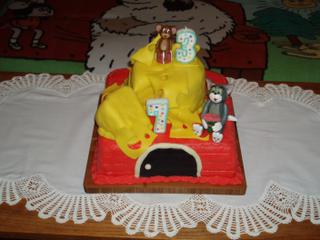 @denisee dort byl domácí,dělal mi ho kamarádka,vevnitř byl mramorovanej piškot promazávanej pudinkovým krémem,prej byl moc dobrej,já ho neochutnala,nesmím marcipán ani kakao,tak se mi nechtělo vydloubávat jen ty kousky,co bych směla