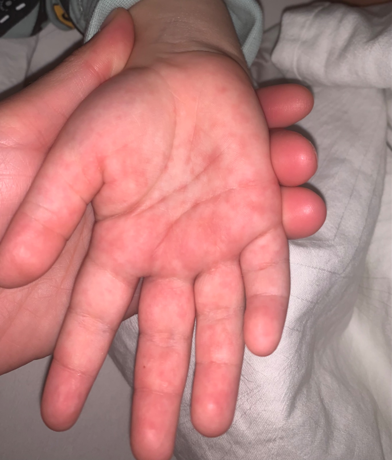 Pred dvoma tyzdnami dostal syn siedmu chorobu, bol vyhadzany v v ustach a mal jeden pluzgierik na ruke,postupne to preslo a pluzgierik na ruke zaschol,,ale pred 6 dnami sa zacal skrabat na dlanach cele noci a vyhodili sa mu ako keby podkozne vyrazky ( vid foto) , zaujimalo by ma ci mate niekto taku skusenost,ci moze byt este infekcny ( viem ze sa tato choroba vylucuje este dlhou v stolici,na to sa nepytam, skor ma zaujima ci moze nakazit niekoho dotykom,alebo kvapockami)? Nic mu inak nie je ,iba to skrabanie v noci. Doktorka povedala ze mame ostat 10 dni doma, co uz preslo .