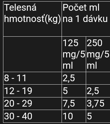 Ako mne osobne sa to zda malo. Ved dcerka ked mala 4 roky cize nemala ani 20kg uzivala 5ml pri plucnych chlamydiach.