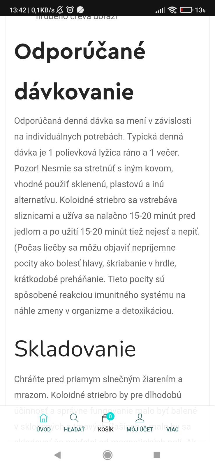 Vyjadrenie PharmDr. Patrície Čečkovej: Koloidné striebro je charakterizované ako prírodný kozmetický prípravok, ktorý má protizápalové, antimikrobiálne aj dezinfekčné účinky. Je určený primárne na čistenie a regeneráciu pleti. Znižuje sekréciu mazu, rozíšrené póry a priaznivo pôsobí na aknóznu pleť. Podľa smernice EU vnútorné užívanie potravín a výživových doplnkov s obsahom nanočastíc nie je povolené.