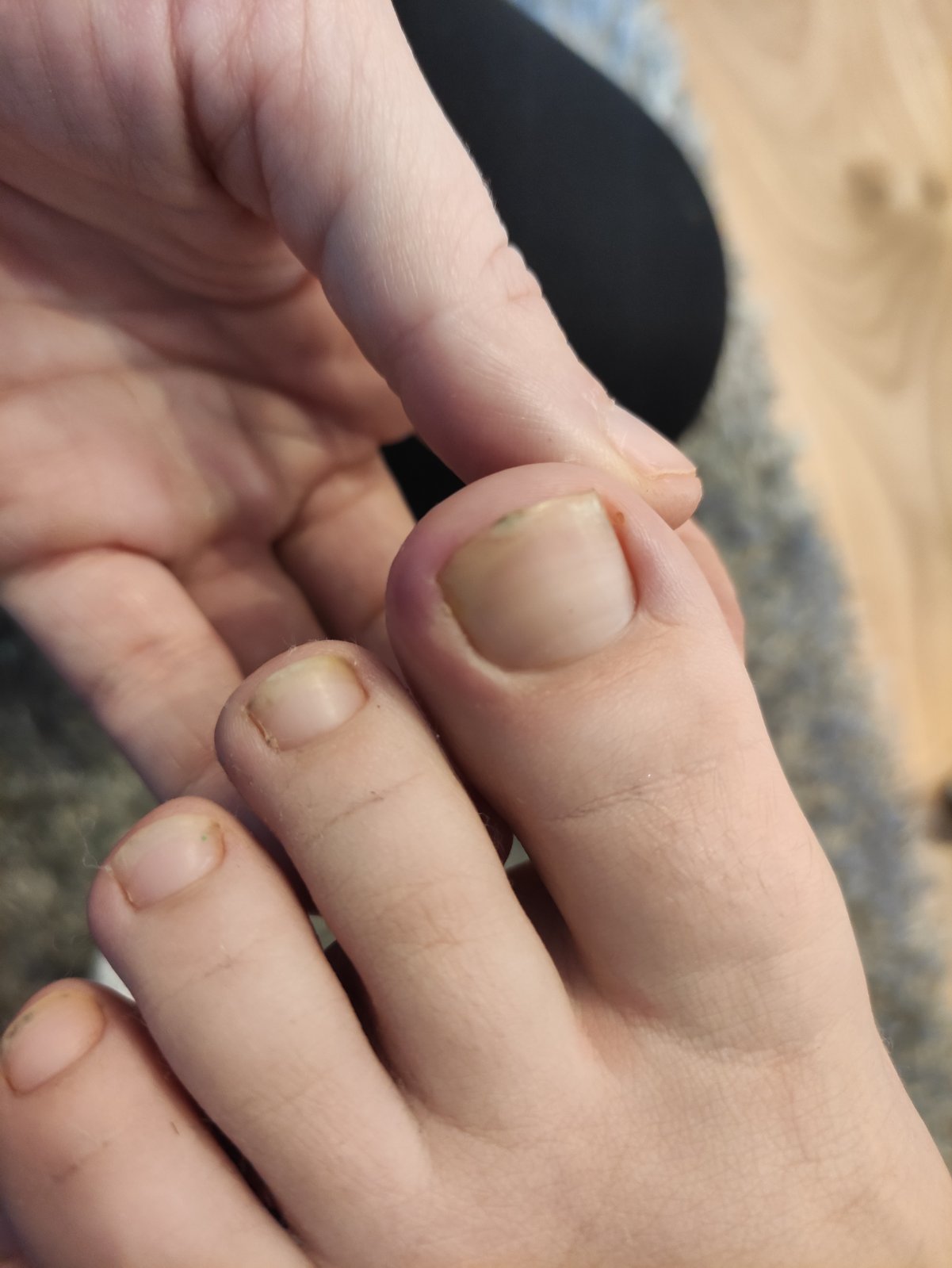 @najzienka áno zarastený...a z čoho? U úzkej obuvi, zlej veľkosti ponoziek...smer pedikerka, dá sa na to spona q treba vymeniť veľkosť topanky...všetky....ak to neurobíte bude to minimálne v takomto štádiu, alebo to vrastie ešte viac, a viac bude boliet...veľkosť topanky si skontrolujes tak, že vložíš obkreslenu maketu nohy do topanky..tam kde sa co i len trosku pokrčí, tlačí a je to male...bud treba kúpiť barefoot..to su široké topanky a z normálnej obuvi majú väčšie ešte Adidas alebo skechers tenisky