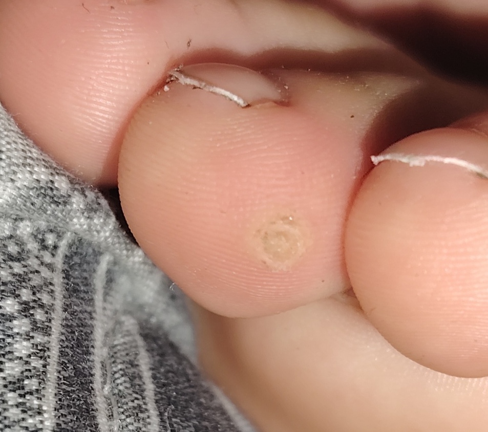 @karmenka123 fotka je lepšia, prikláňam sa skôr ze je to kurie oko. Na fotke vidieť ako prsty na seba su príliš natlačené. Nevhodná, uzka obuv, male ponožky, nosenie siloniek.....