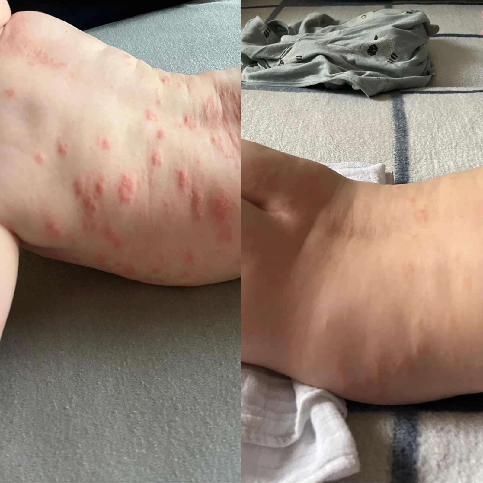 Cez tyzden ideme k pediatricke na poradnu, tak uvidim, ci to dovtedy pocka. Lebo mu davam ten fenistil, co je antihistaminikum, tak som prekvapena, ze sa mu robia nove vyrazky 😔