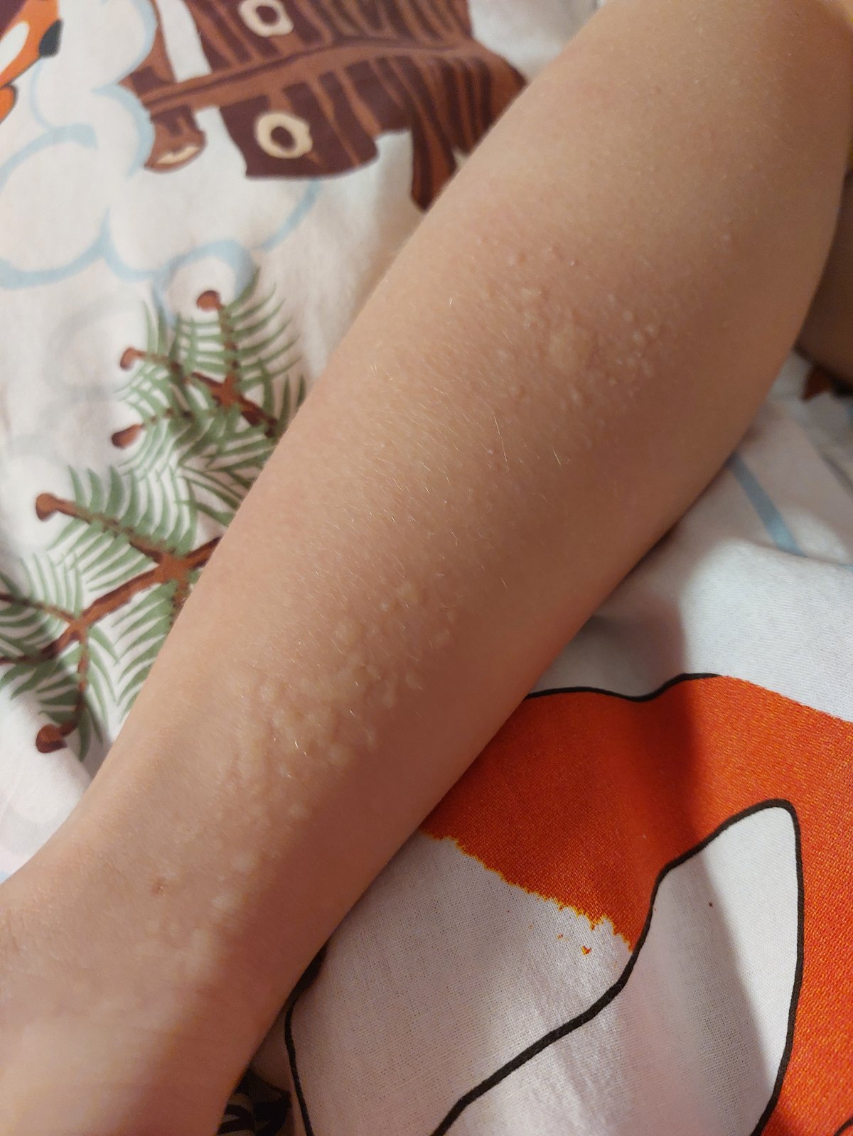 Dcéra včera do rána zvracala, hnačky nemá, dnes slabosť, mierne zvýšena teplota 37,3 a zrazu toto.Veľké svrbive akoby pluzgiere na nohach a rukách, na lícach červená.