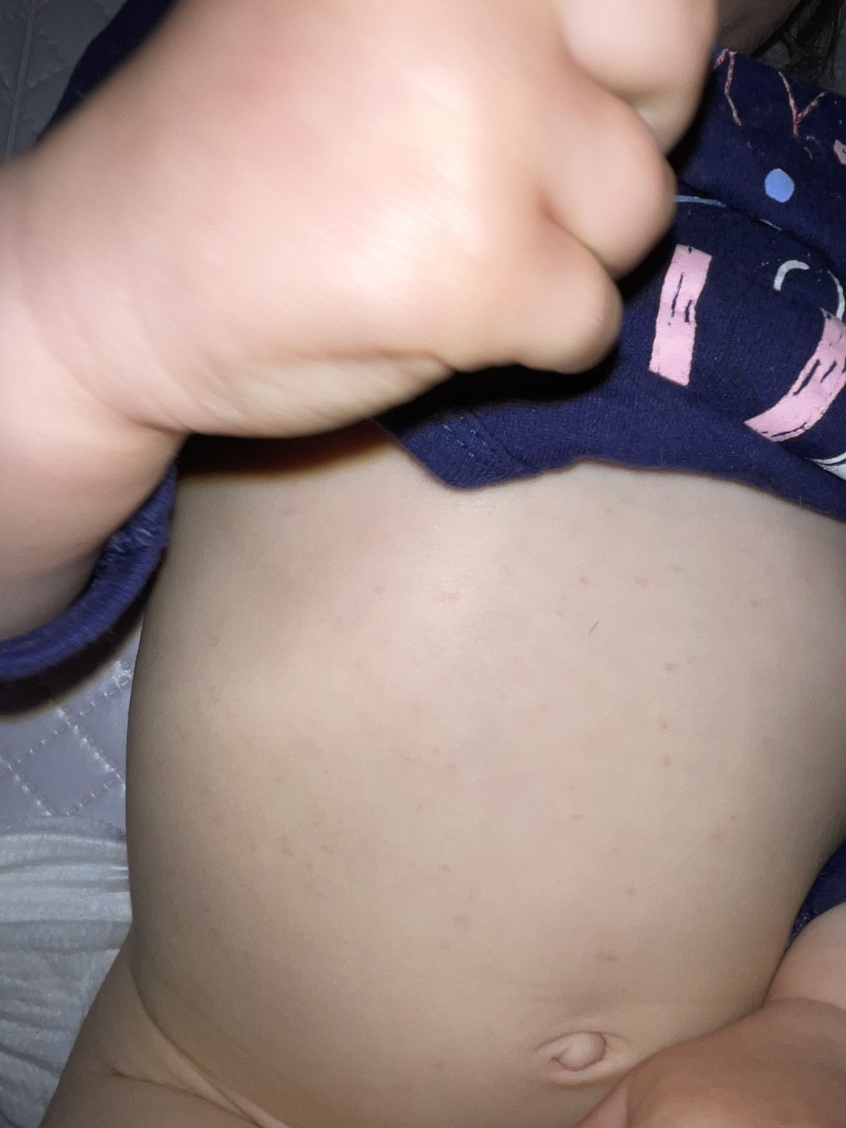 na foto nie je velmi dobee vidiet, ale ak mala horucky a vysyp, tak to moze byt ono... u nas maly horuckoval 5 dni a az potom sa vysypal... vysyp mal len 1 den a na druhy zmizol 🤷🏼♀️