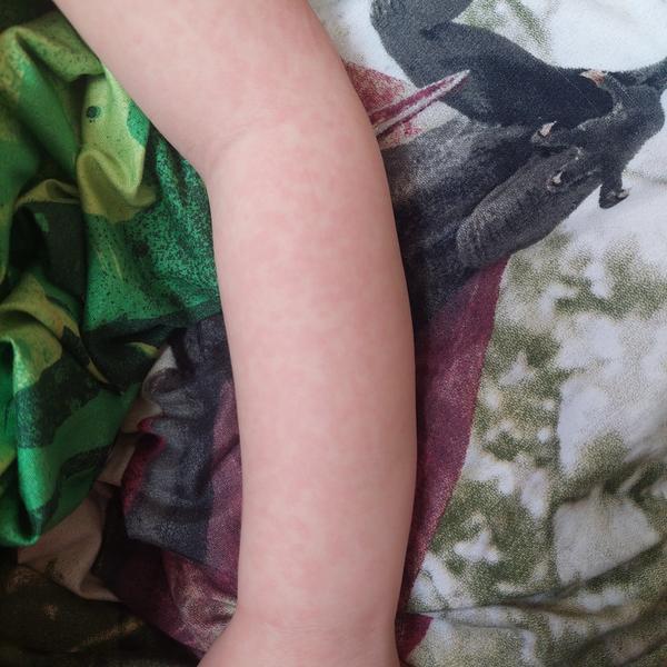 Pozri jazyk ak je malinovy s bielym povlakom a na podnebi tiez , plus hnis na mandliach tak saflach ak nie tak 6 choroba tu sme teraz prdkonali decka boli rovnako vysypane