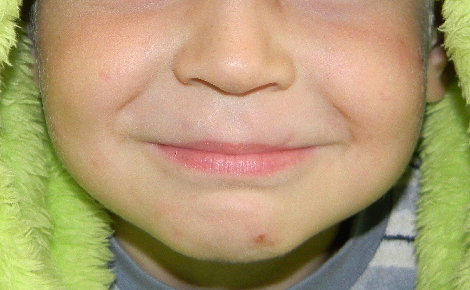 prikladam fotku bez retuše .. to na brade je po komarovi , či po čom. nad perou vidno zlepšienie - na pravo na fotke ma tu dvojitu jazvu a na lavo sa mu to takmer stratilo , ale akoze to vidno,ale nieje to nic hrozne . pod perou na lavo ma viac malých okruhlych kraterou,tie sa uz ani nepohli , su to take preliačinky bez pigmentacie , tie hore su ešte trochu tmavsie pigmentované .