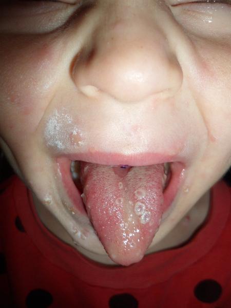 ja ho oplachujem v hypermangane od zaciatku,davala som aj to mlieko tanno hermal - z toho ma tam tie biele flaky. Ostatne mažem tee tree olejom . Kupila som včera svedske kvapky,ze su dobre na jazvy,zatke starsiemu mazem este take tie ruzove flaky co mu ostali a budem mazat aj mensieho. U nas je najhorsie tvar , okolo ust a brady , okolo oči , obocie. Ale tie usta su najhorsie , akoby mal herpsy ... fotka este aj skresluje,ze to nieje vidiet take cervene. Posielam fotky z rána , dnes 6.den - a konečne bola dobra noc, dnes i pije - čo je zázrak . Este som zabudla , že na take zapalene a odlupane dávam betadine roztok , strasiemu to super pomohlo pri takých megavelkých , ktore mal .