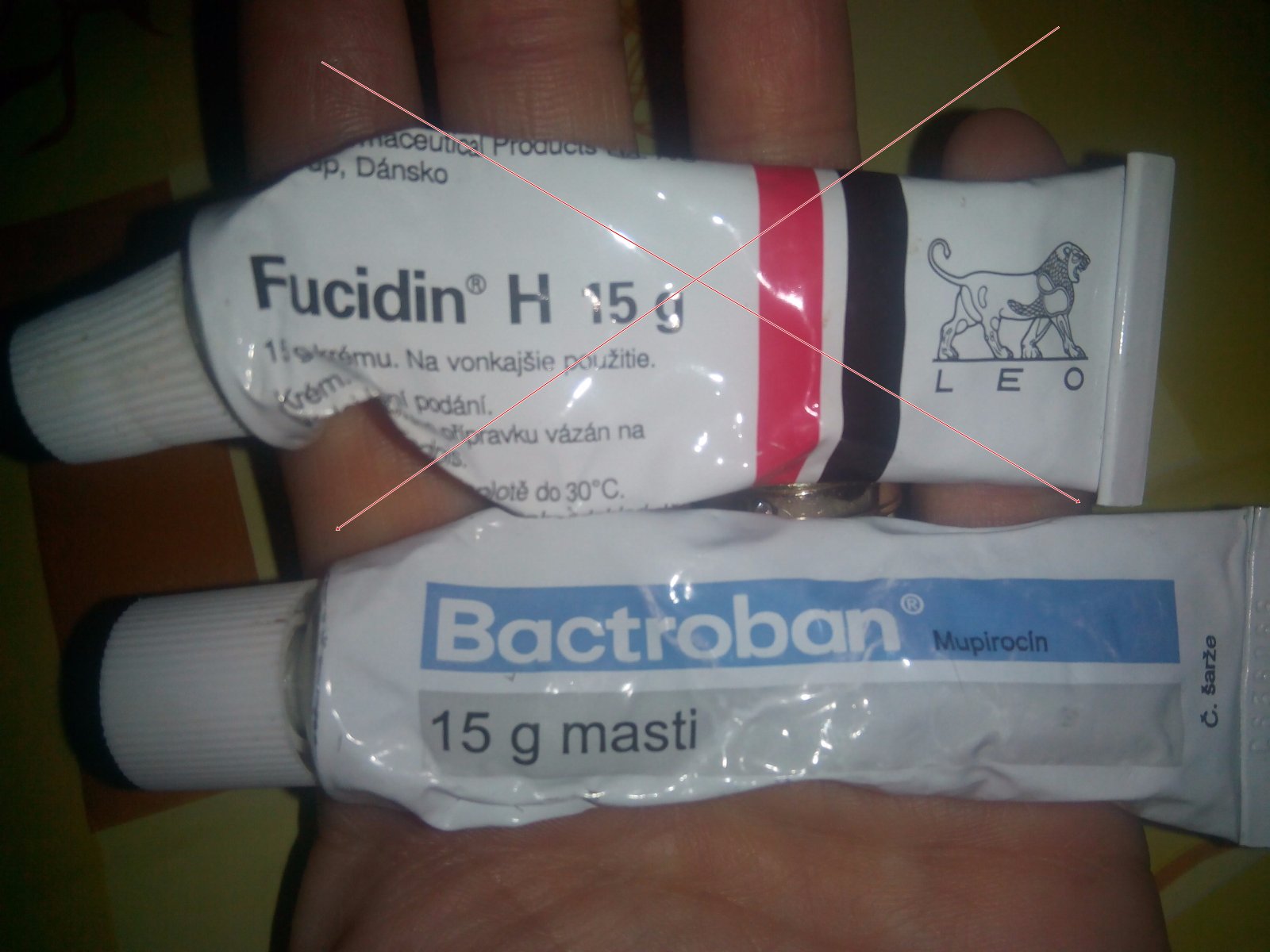 @loginexistuje Fucidin H - nie, radíš jej somarinu . Konzultovala som to s koznou , kedže mám doma obe maste . Nesmies na to dat hydrokortizon . Bud cisty FUCIDIN alebo BACTROBAN ( ten davam ja ) ,poprípade Framykoin !