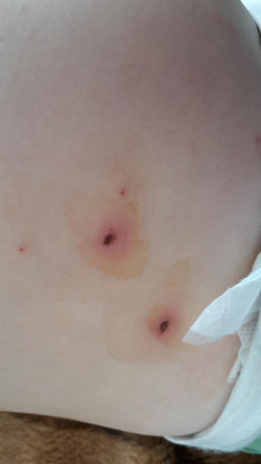 @lucula73 my sme mali 6 dni teploty , des a hruza,najhorsie dni ake som s detmi mala . casto som ho kupala v hypermangane , potom osusit , nastriekat dettol,alebo aloe . Aby saneskriabal,daj fenistil 3x denne