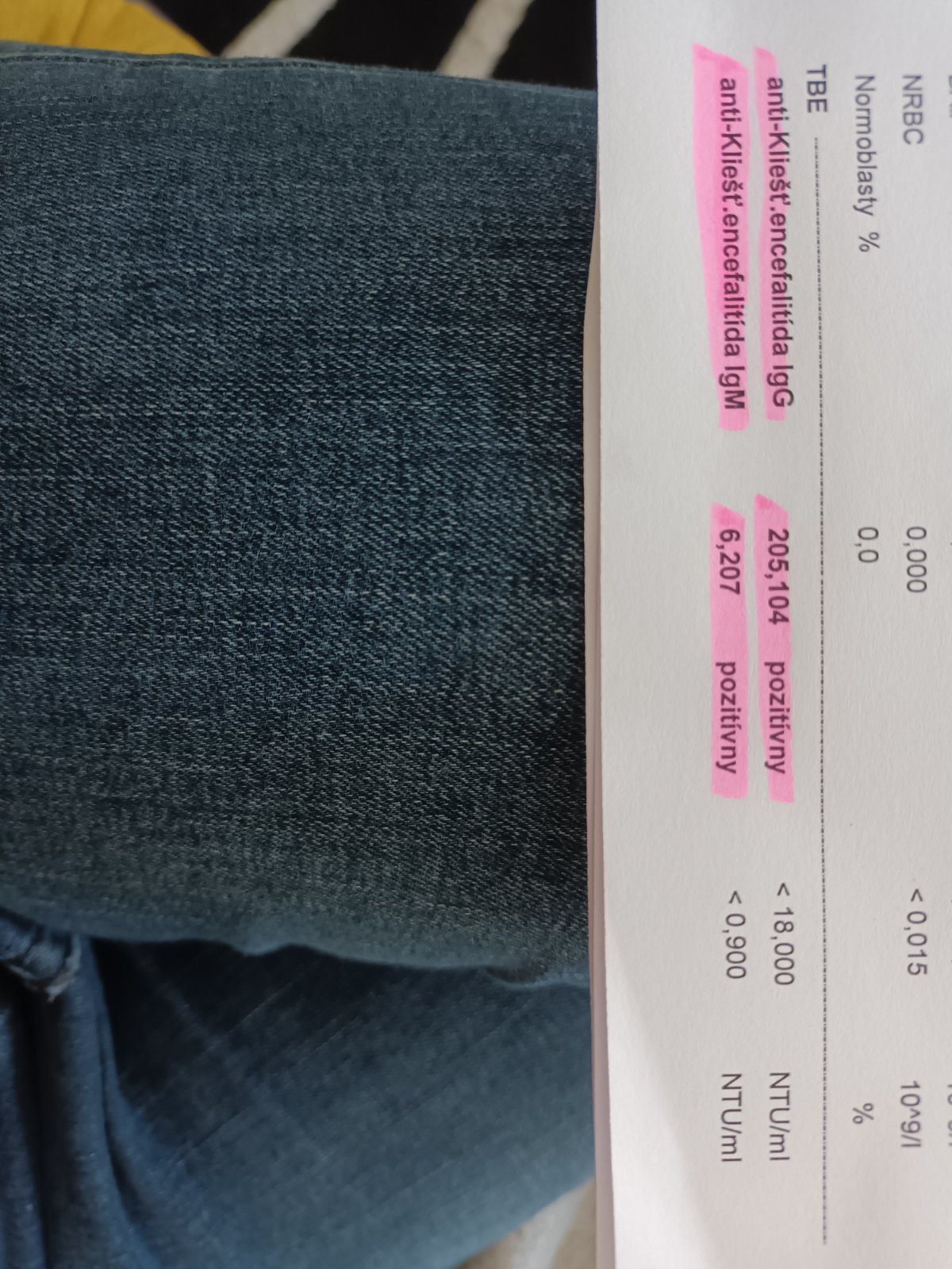 @miirkka1 Na čísla sa v tom nemôže spolahnúť. V každom prípade, ak sa má dieťa dobre, neriešte nič. A to je hlúposť, že to má riešiť pediater alebo neurológ. Pediater jednoducho vypíše výmenný lístok na infekčné a neurológiu a dovidenia. Neurológ ju vyšetrí, konštatuje, či má neuroinfekt alebo nie, a ak áno, pošle na infekčné. Tak či tak to skončí na infekčnom ak sa vám to ešte skomplikuje. Ak to nebude mať dvojfázový priebeh, resp ak už aj prešla druhá fáza, ale s miernym prejavom, tak už je to jedno a len sa dolieči. A keď tie protilátky neboli oficiálne stanovené cestou ako majú byť, je vhodné to zopakovať normálne cez lekára a overiť si tým správnosť výsledkov.