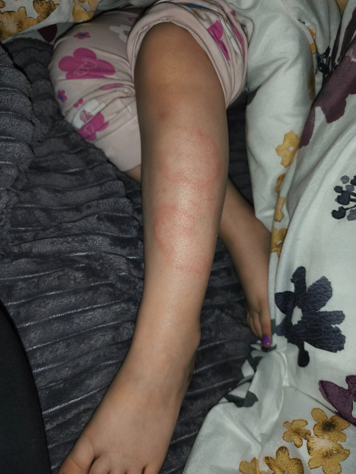 Dieťatko má 15 mesiacov , fliačky sú červene , suché , niekedy spontánne vyblednu, potom sa zas začervenaju , nesvrbia, nachádzajú sa na stehne, a lakti .