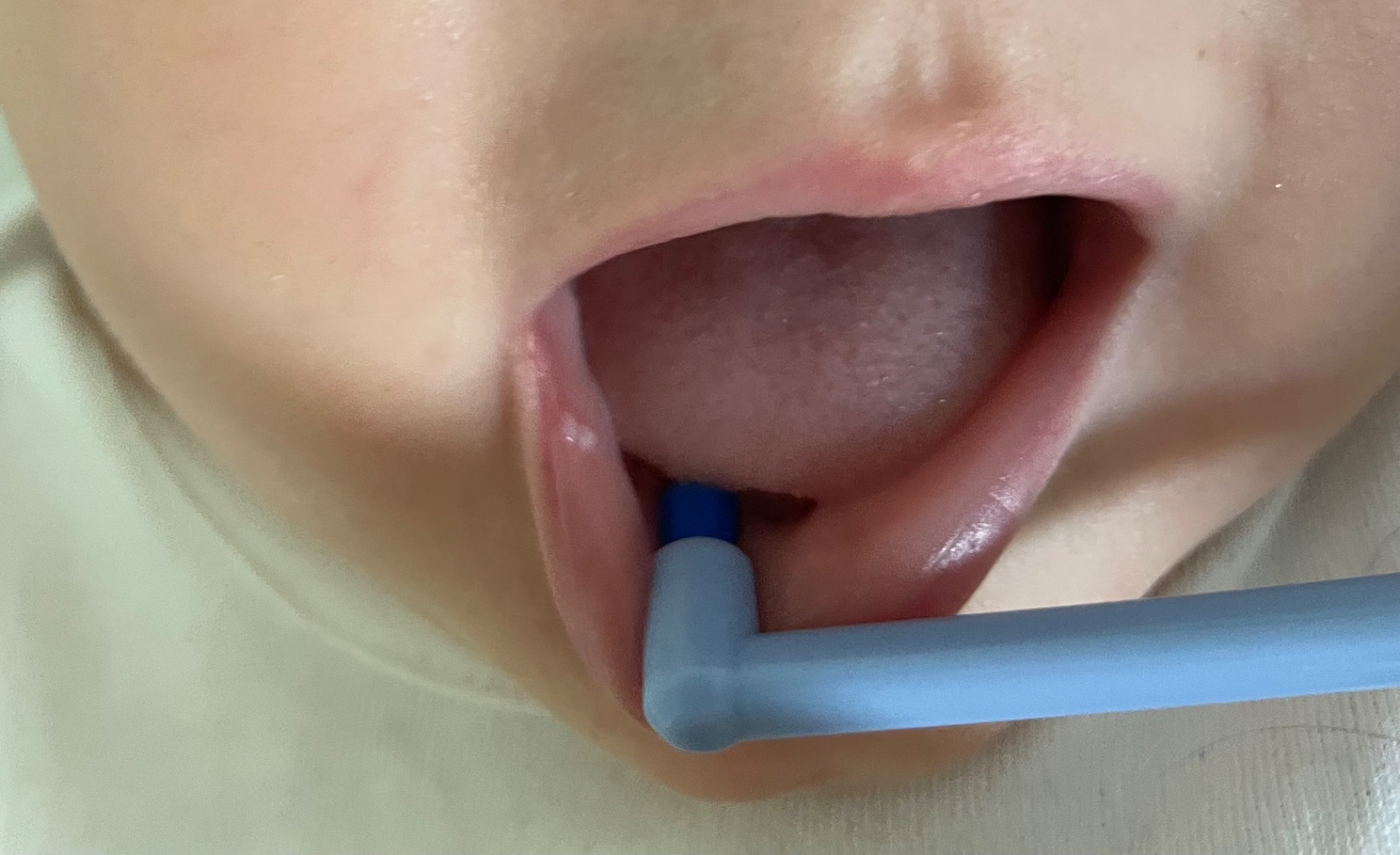 nevidim, aky je stary resp ci ma uz zuby, mohol sa len pohryzt....ale mozu to byt aj afty...nasa ked ma aftu, nedavam nic, pokial sa nestazuje na bolest.... ked ju to boli, davam kamistad senzitiv