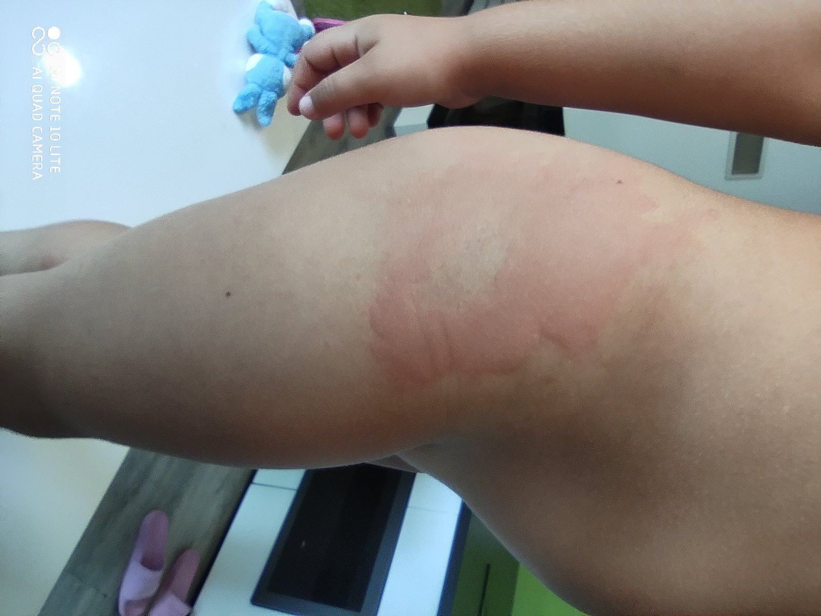 Vyzera to ako zihlavka - alergicka reakcia, vacsinou na nejaku potravinu alebo nieco co bolo v kontakte s pokozkou. Po fenistil kvapkach alebo zodacu by to malo prestat svrbiet a zmiznut.