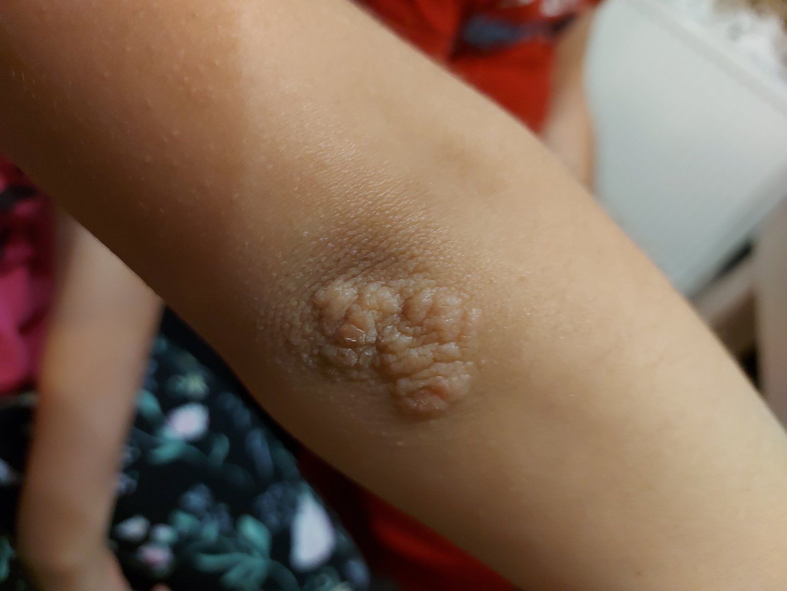 Svrbí ju to? Mne sa to isté teraz spravilo pár dní dozadu len v menšom rozsahu a tiež na lakti.. dajte potom vedieť o čo išlo 🙏🏼