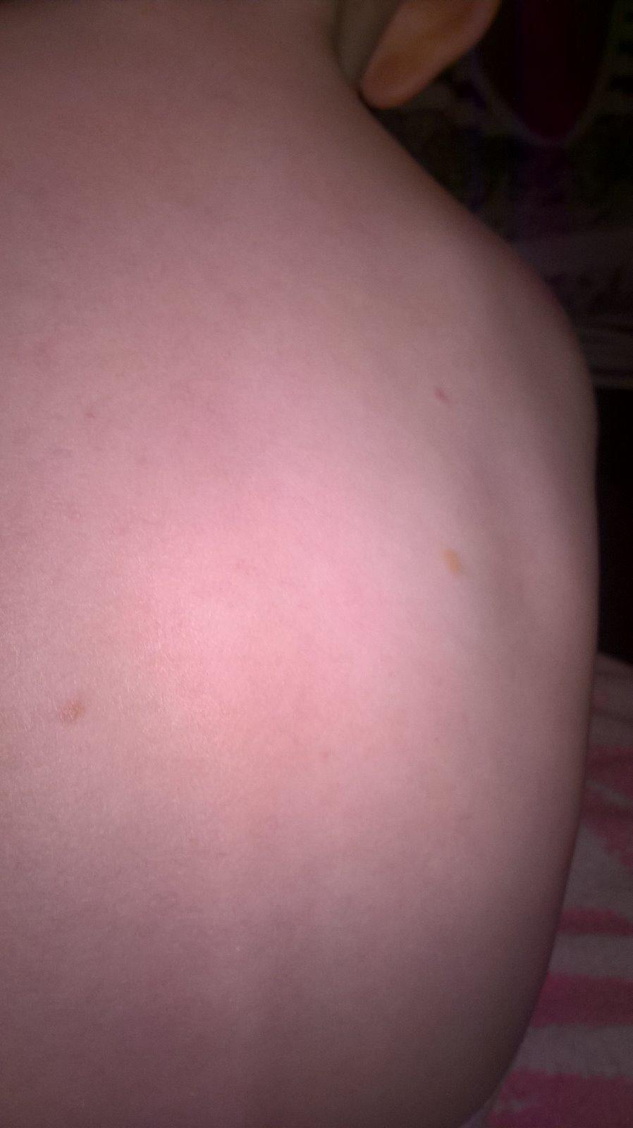 Nie je to veľmi dobre vidieť na foto. Bledohnedé fliačiky, niektoré skôr žltohnedé. Trošku vystúpené, ale nie veľmi (nie tak ako bradavica). Boli malé, ale už sa zväčšili, predtým pripomínali znamienka, lebo tie prvé boli väčšinou okrúhle, teraz sú skôr oválne. Niektoré fľaky sú ťažko viditeľné, lebo sú naozaj bledučké.