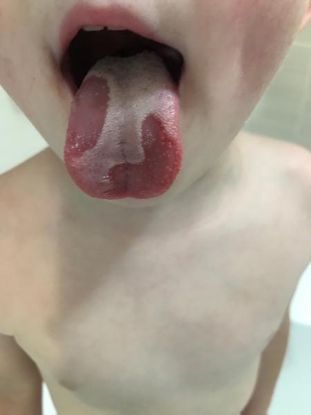 My to máme od narodenia. Na začiatku nám dala dr len nejaký sprej na jazyk ze vraj to ma od mlieka,no aj keď prestal piť mlieko stále taký ma.zevraj potravinová alergia.maly ma 3 roky a ze vraj to nevadí.tak to zatiaľ neriesime