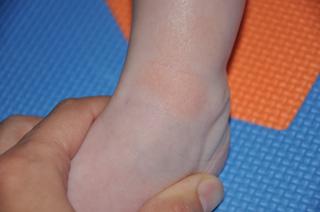 Když o tom tak přemýšlím, tak mu to asi opravdu začalo víc po té rýmě. Předtím měl jen malé světlé kolečko na noze, jinak nic.