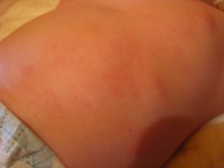 tak u nás je to poslední dny hrůza ☹ Michálek nedostal k jídlu nic nového a stejně se mu udělalo dost fleků na zadečku a ze zadu na nožičkách. Asi to má souvislost se zubama, protože se mu před pár dny jeden prořezal a další dva se mu prořezávají. Zatím ale čekám a doufám, že se to zlepší a nebudu muset na kožní.