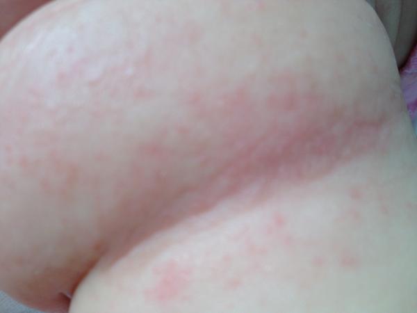A alergie u me zadne, manzel asi na morske plody a jeho sestra nejak pyly nebo tak neco. Astma take ne. Projevy ma ted ty cervene zahyby - krk nejvic, kotnik, podpazi, kolinka jen trosku. A k tomu ta vyrazka v plenkove oblasti, co nevim, co je. A to je takova ta krupicka, cervene pupinky, suche, nemokva to. A jeste mela takove ty detske lupy na hlavicce, to docela odeslo. A ma sussi kuzi na cele. Ale celkov emi jeji kzue sucha neprijde.