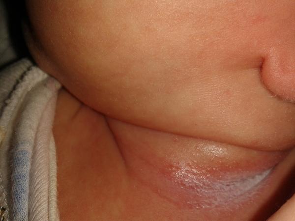 malá se se mnou prala, tak snad to dobře vidíte, to bílé je od bepanthenu, ale jinak je to trošičku běloučké bez toho krému jak ji to mokvá, když ji to utírám, tak ta kůžička jde dolů, to mokré se jakoby drolí, odlupuje a pod tím je kůžička už nová, hezká. Má to už tak 1-2 týdny, nic ji nebolí, nesvědí, nemá žádnou vyrážku nikde. takže podle Vás je to brzy, aby měla inhalační projevy od 3.-4. týdne, kdy se to začalo objevovat? v pondělí s ní zajdu k doktorce, ale co teď? mám dát zásyp?