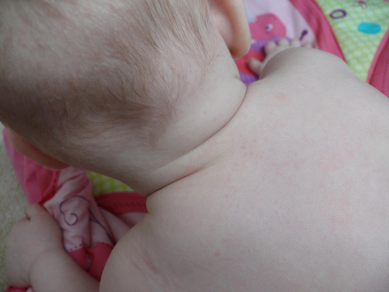 Dobrý den, před pár dny se mé dceři, které bude zítra 8 měsíců objevily na těle pupínky. První den na jednom uchu, které si pořád žmoulala a měla ho červené. Druhý den měla vzadu na krku a postupně i vpředu pod bradou, na krku a začalo se jí to rozlézat směrem k pupíku. Na krku má pár červených flíčků, které ji různě mizí a dělají se nové, jinak jsou pupínky vidět jen malinko, zato jsou cítit na omak.