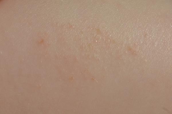 - v cca 18M se na lýtku objevila zdrsnělá kůže (pouze maličké ložisko) - nebylo okem viditelné, ale bylo cítit hmatem - ložisko se postupně zvětšovalo - pomáhá pravidelné mazání po každém mytí (při přebalování sprchujeme) - při promazávání je flíček hladký a světlý, prakticky není vidět; když se nepromázává - je hrubý, zvětšuje, má tendenci červenat; stejný flíček se začal tvořit na druhém lýtku, v bedrech a na paži.