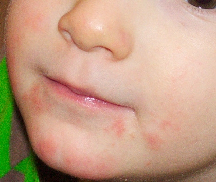 - od novorozeneckého období citlivější kůže na obličeji - zčervenání, fleky, pupínky; zarudnutí kolem nosu a úst se objevuje či výrazně zhoršuje při nemoci (zčervenání je prvním příznakem počínajícího nachlazení), kůže je citlivá na špínu - když se synek prsty ušpiněnými od země dotkne obličeje