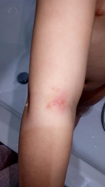pokial by to vsak mala dcerka cervene tzv. "horiace",ze svrbi to a nie je to suche, treba to vysusat a skludnit, na to najlepsie funguje tekuty puder alebo zinkova mast.