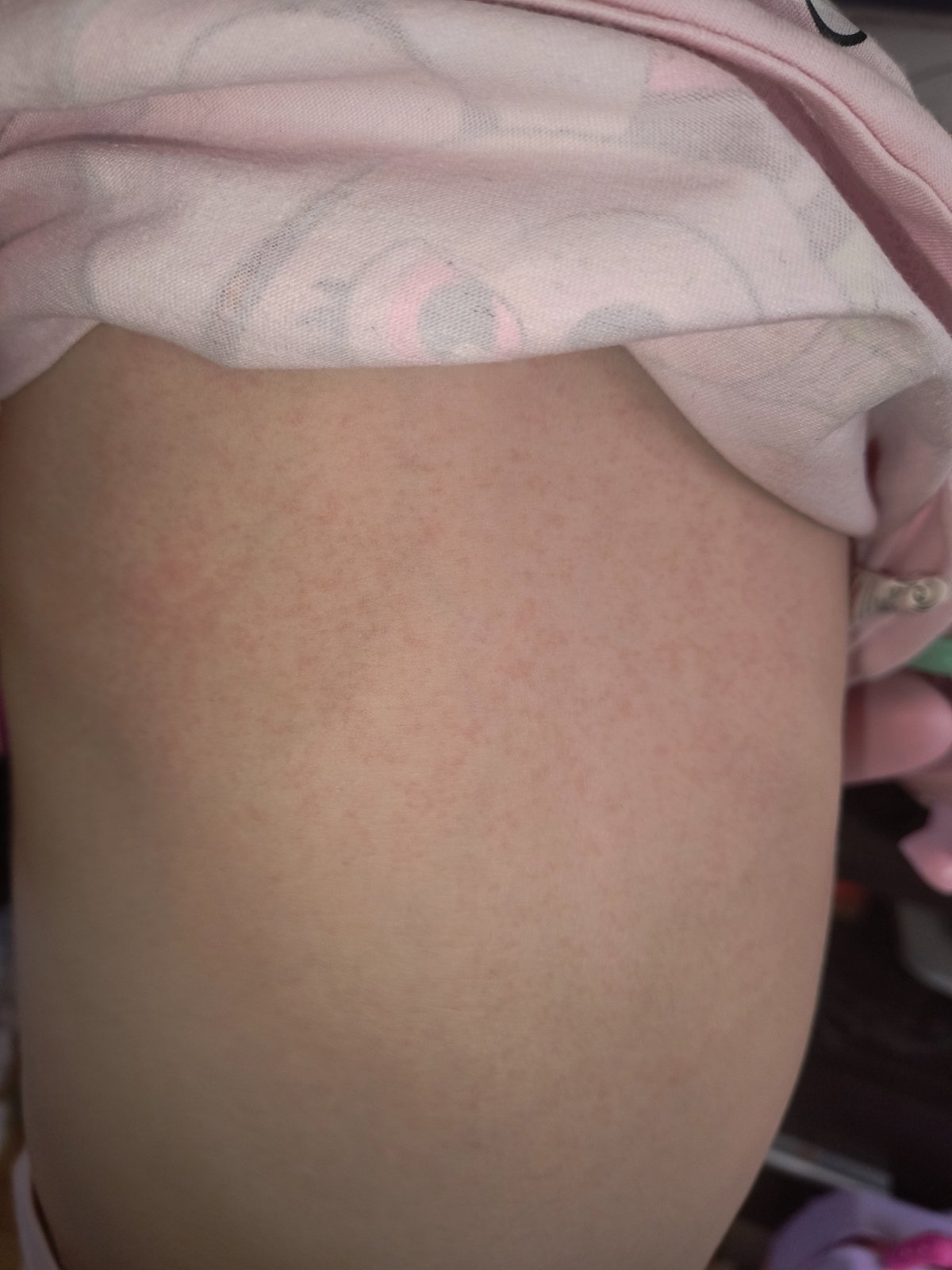 Zdravim moja dcérka sa ráno zobudila s takýmto výsipom chorá nieje žiadna zmena v jedálničku ani v pracích prostriedkoch. V noci bola zákryta trochu ju to svrby zrejme skriabala.
