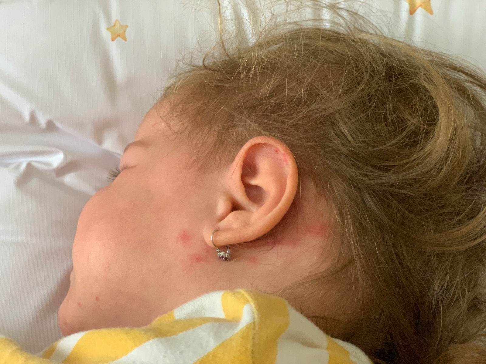 Prosim Vas co su toto za vyrazky? Nemozu to byt ovcie kiahne? Nema teploty ani nevidim nejake zmeny spravania, ale aj za uskom ma velmi cervenu citlivu kozu…. Rozmyslam ci to nemoze byt aj tym ze takmer celu noc bola otocena tou stranou a lezala na boku..