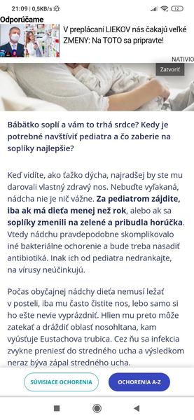 @petikmir never vsetkemu co sa kde napise..ochoriet moze kazdy aj babatko a nie vzdy to je hned na akutnu lekarsku pohotovost...kaslik,teploty do 38-38,5, sopliky,ci unava ztohoto su zvladnutelne domacou liecbou..treba len sledovat...moja dcerka ked mala 9mesiacov dostala laringitidu, vnoci sme jej nemohli utisit otrasny kasel,trvalo to asi dve hodiny kym ma strach prinutil zobudit muza a syna a isli sme na pohotovost,,tam si nas nechali, znizili horucku,kasel dostali pod kontrolu a po troch dnoch sme sli domov..ale to bol ozaj neutichsjuci kasel, az sa dusila