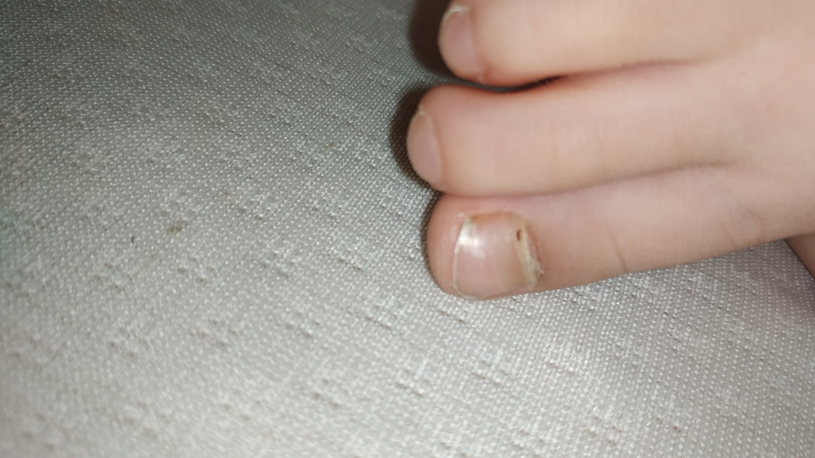 Môj syn si pred mesiacom rozmliazdil prst kladivom, teraz mu vyrastá necht, našťastie mu nezliezol, ale vidno už ako vyrastá poškodený necht.. vyzerá to troška podobne..