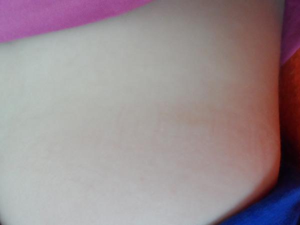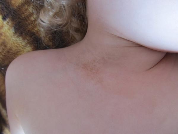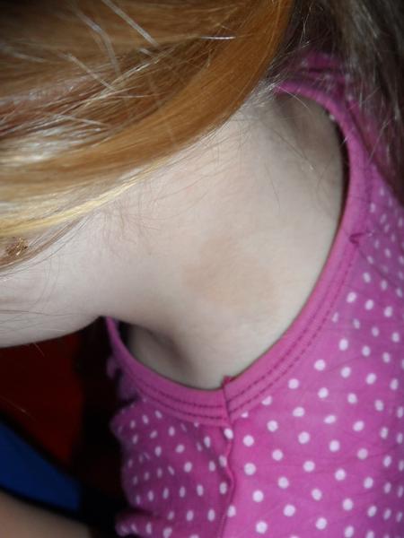 Druha je bledsia a zo zaciatku nebola jasne ohranicena, ale casom sa ohranicila a mam pocit, ze tato skvrna rastie spolu s dcerou (na tom mieste sa jej volakedy robieval taky cerveny flak - najma po poobednom spanku - zjavil sa a do hodiny zmizol, asi ako sa potila pocas spanku)