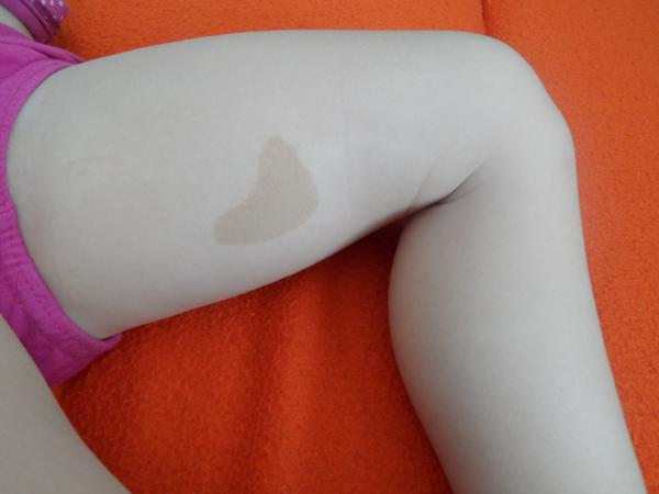 Prva skvrna sa jej zjavila zo dna na den - ma tvar hnedeho srdiecka a okraje su ohranicene... Tato skvrna nerastie a teda s rastucou koncatinou sa zda mensia a mensia...
