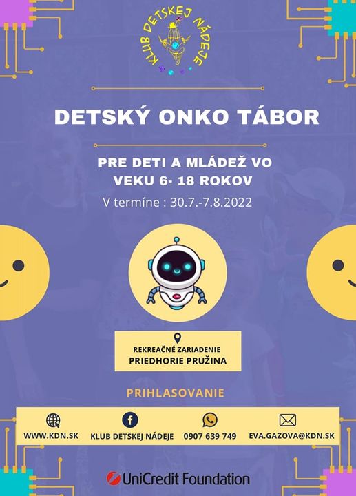 Ak by ste chceli prihlásiť svoje detičky s diagnózou neurofibromatóza do tábora a dopriať im radosť počas leta, pripájam obrázok o jednom takom tábore, ktorý je pre vaše dieťa a súrodencov vďaka sponzorom zadarmo.